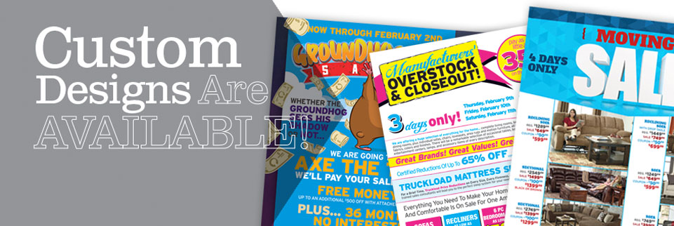 We have an extensive library of sale event designs and a team of designers who can create something specific to your needs.